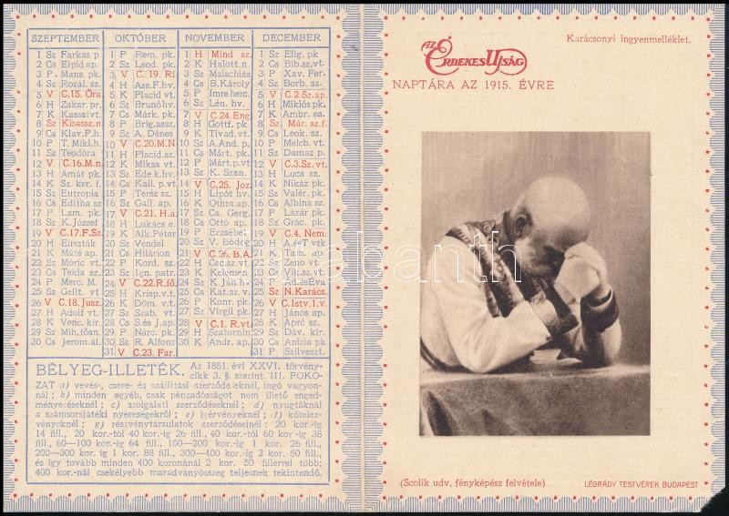 1915 Az Érdekes Újság kártyanaptára, címlapján Ferenc József képével, ...