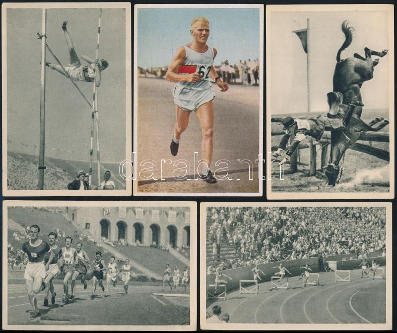 1932 Egy olimpia képei, 11 db nyomtatvány, hátoldalon német nyelvű leírással