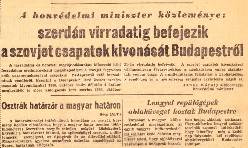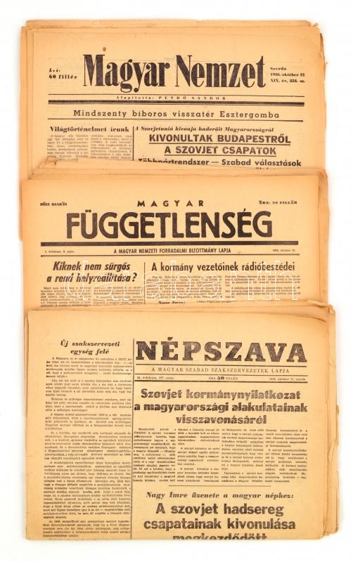 Description: 1956 Vegyes 1956-os újság tétel, 12 db. Magyar Függetlenség I. évf. 3. sz. déli kiadás, 4. sz. reggeli kiadás, 4. sz., 5 sz. reggeli kiadás. Szerk.: Dudás József.; Népszava 84. évf. 257., 77. évf. 1-3. sz.; Magyar Nemzet XIX. évf. 254-257 sz. 1956. okt. 31-nov. 3. Változó állapotban, néhányon szakadásokkal, egy-kettőn folttal.
