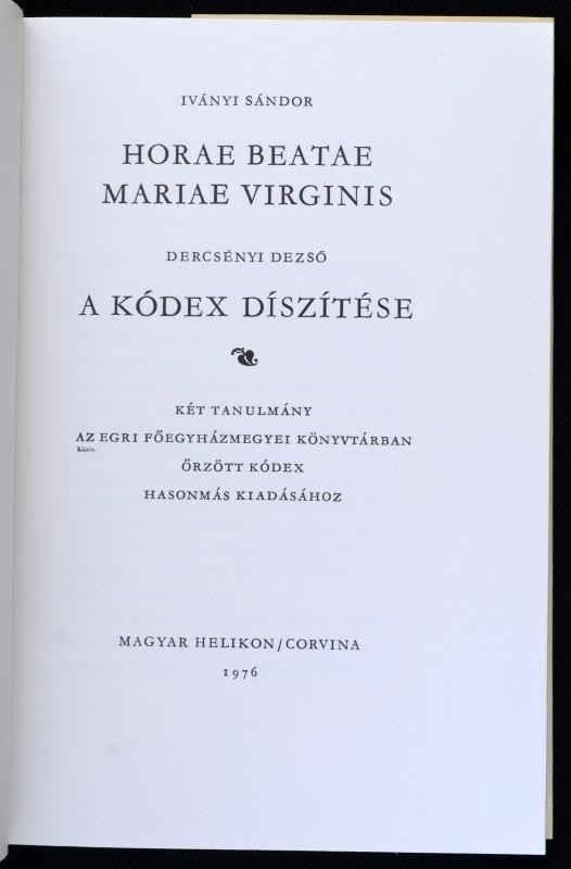 Horae Beatae Mariae Virginis I-II. kötet. Az Egri Főegyházmegyei Könyv... https://www.darabanth.com/en/358-Online-auction/358.0/Books/Books-Religion~500052/Horae-Beatae-Mariae-Virginis-I-II-kotet-Az-Egri-Foegyhazmegyei-Konyvtarban-orzott-kodex-ha~II2060781