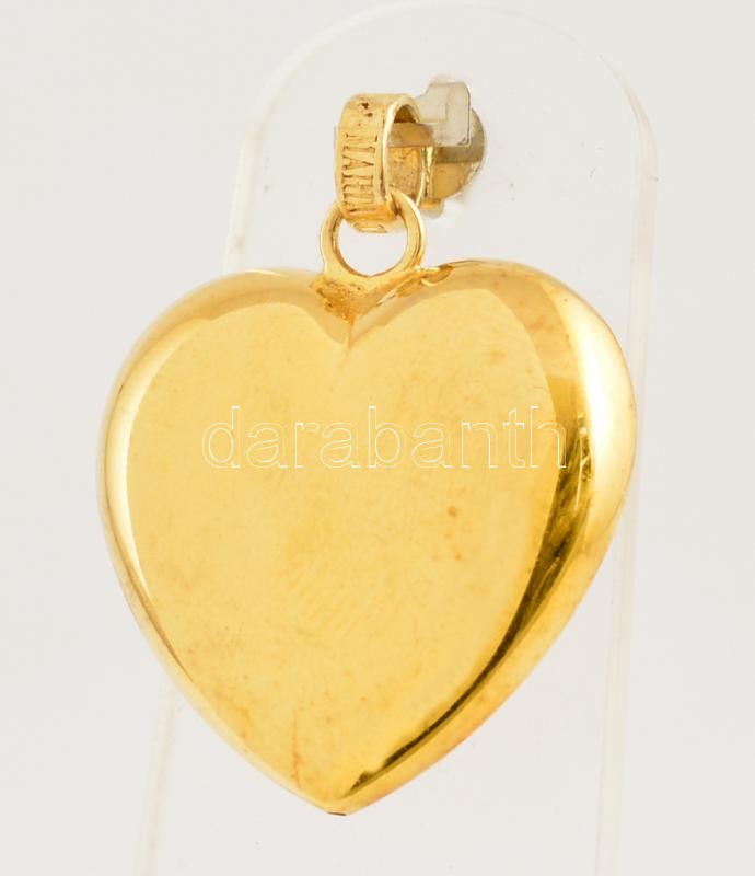 Aranyozott ezüst(Ag) szív medál, jelzett, kopásnyomokkal, 2,5×2,5 cm, nettó: 6,8 g