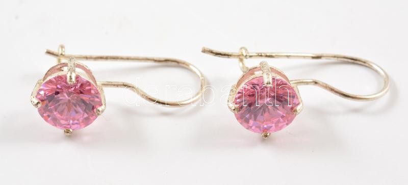 Ezüst(Ag) fülbevalópár rózsaszín kővel, jelzett, h: 2 cm, bruttó: 2,7 ...