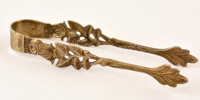 Ezüst(Ag) rózsás cukorcsipesz, jelzett, h: 9,5 cm, nettó: 18 g