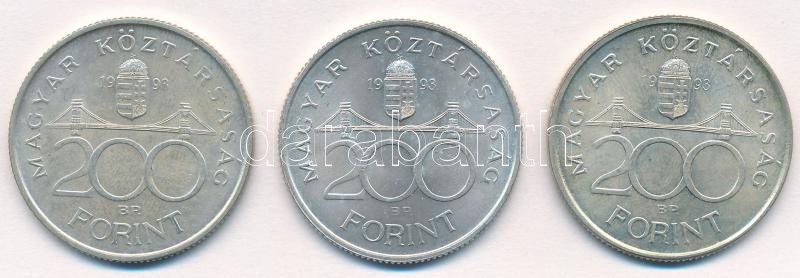 1993. 200Ft Ag "MNB" (3x) T:1-,2 Adamo F13