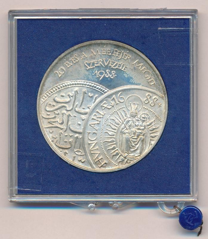 Description: Fritz Mihály (1947-) 1988. "20 éves a MÉE Fejér megyei Szervezete / Veretett a törökök kivonulásának 300. évfordulóján" Ag emlékérem (~35g/0.835/42,5mm) sérült, plombált ÁPV tokban T:1 (PP)