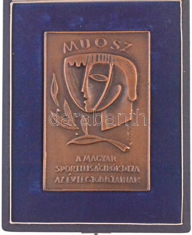 Description: Kiss Kovács Gyula (1922-1984) ~1970. "MUOSZ - A Magyar Sportújságírók Díja - Az év legjobbjainak" egyoldalas Br plakett, eredeti tokban (119x79mm) T:1-