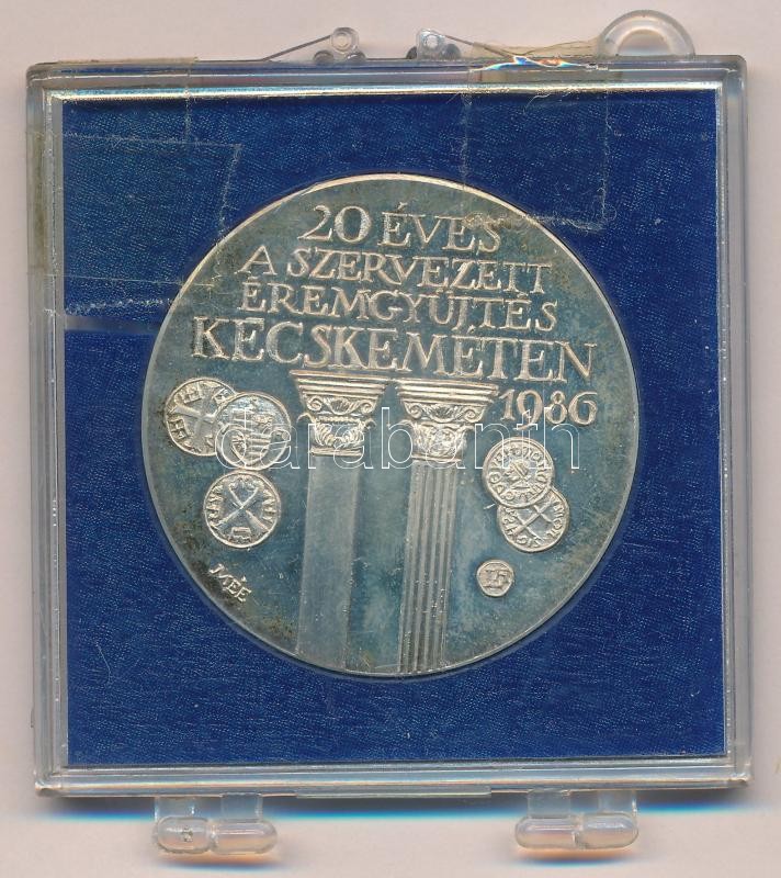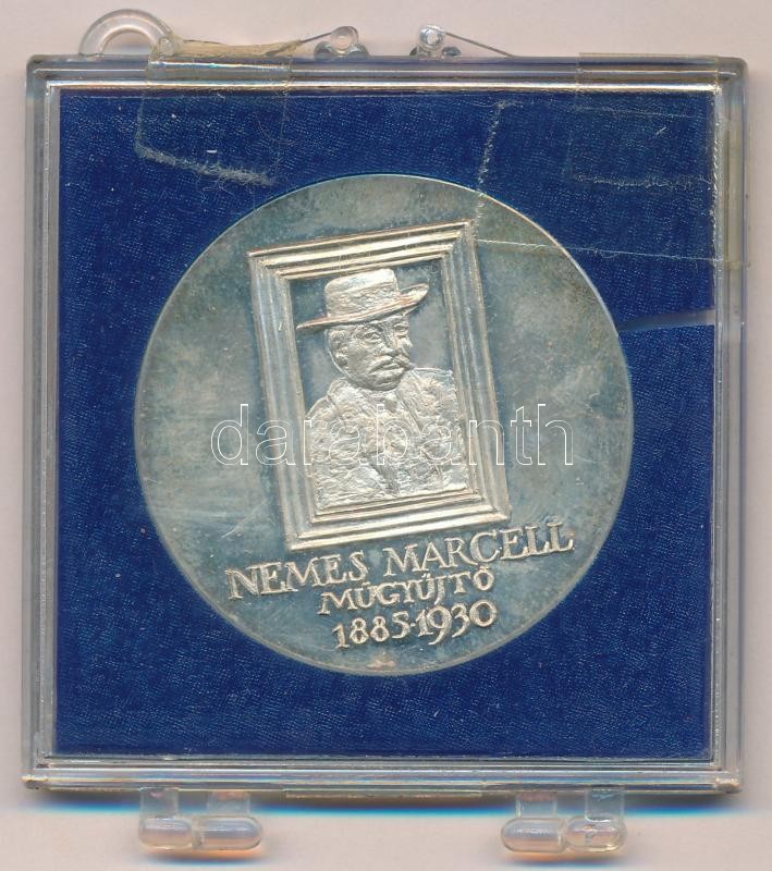 Description: Lapis András (1942- ) 1986. "Nemes Marcell műgyűjtő 1885-1930 / 20 éves a szervezett éremgyűjtés Kecskeméten MÉE" Ag emlékérem, sérült és ragasztott kék ÁPV tokban (~35,g/0.835/42,5mm) T:1-