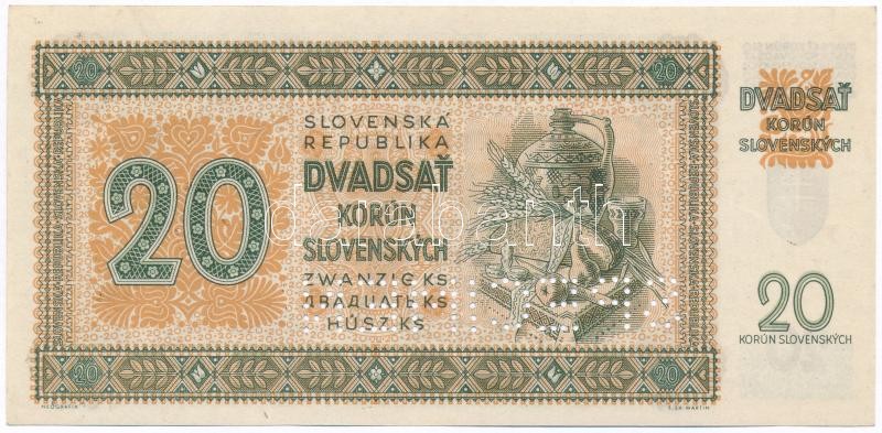 Slovakia 1939. 20 Korun with "SPECIMEN" perforation C:UNC