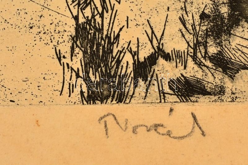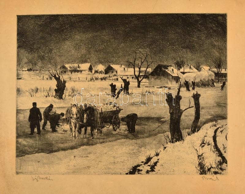 Novák Lajos (1927-1989): Jéghordás. Rézkarc, papír, jelzett, 29×39 cm
