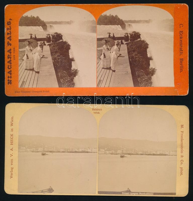 cca 1890-1900 Niagara-vízesés, Trieszt, 2 db sztereófotó, 9×18 cm / Trieste, Niagara Falls, 2 stereo photos