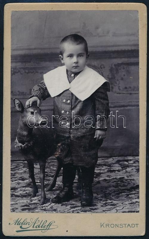 cca 1900 Brassó, Gyerek műtermi portréja, keményhátú fotó Adleff műter...