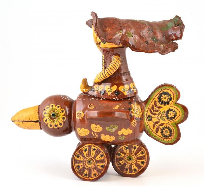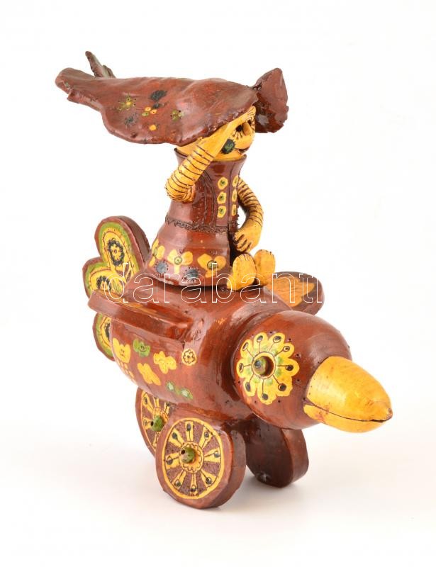 Csavlek Etelka (1947-): Repülő mesefigura. Festett mázas kerámia, jelz...