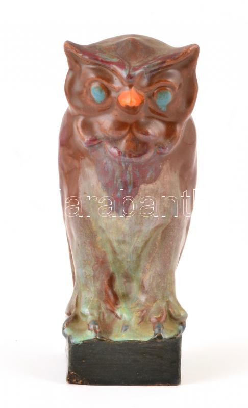 Márky Béla (1900-1992): Bagoly. Mázas kerámia. Jelzett. Hibátlan. 18 c...