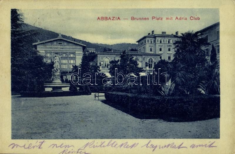 1913 Abbazia, Opatija; Brunnen Platz mit Adria Club / square, Adria Cl...