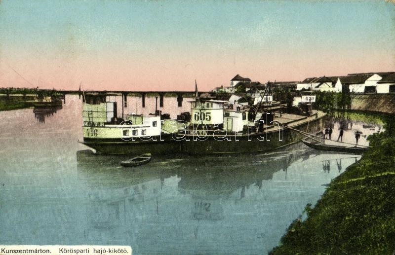 1917 Kunszentmárton, Kőrösparti hajókikötő, MFTR 416 és 605 uszályok