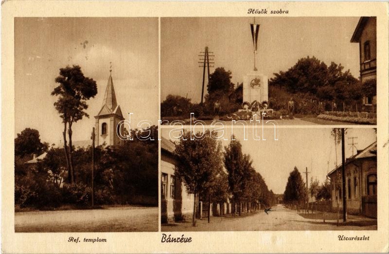 Bánréve, Református templom, Hősök szobra, emlékmű, Országzászló, utca...