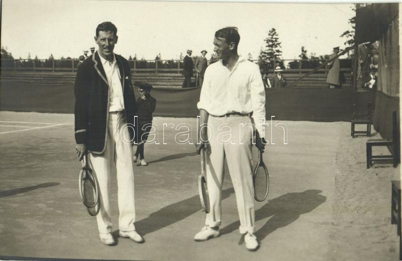 Description: 1912 Stockholm, Olympiska Spelens Officiella. Nr. 46. Sydafrikanerna Kitson och Winslow vinnarna af gentlemens doubles / 1912 Summer Olympics in Stockholm. The successfull South-African tennis players: Kitson and Winslow