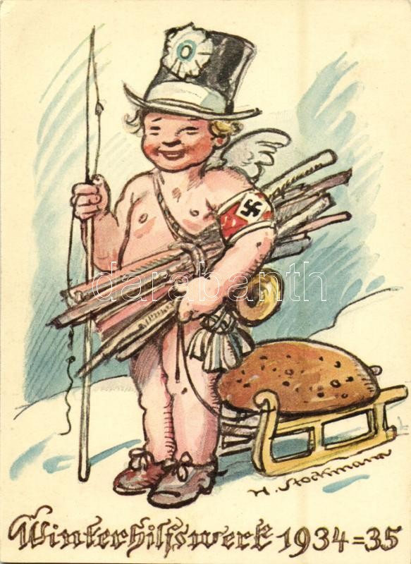 Description: Winterhilfswerk des Deutschen Volkes 1934-35 / "Winter Relief of the German People" NSDAP Nazi Party propaganda art postcard, swastika s: H. Stockmann (EK)