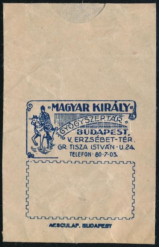 cca 1915 Bp. V., Magyar Király gyógyszertár papírzacskója