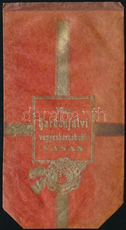 cca 1920-1930 Vasas(-bányatelep), vitéz Gradánfalvi vegyeskereskedés kávés kimérő tasakja,18,5 cm