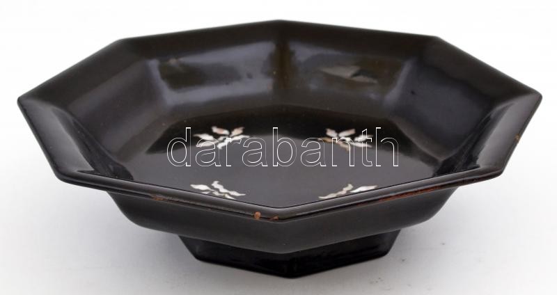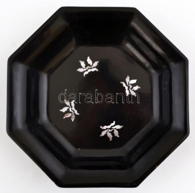 Gyöngyház berakásos lakkozott fa kínáló tál d: 23 cm Két lepattanássa...