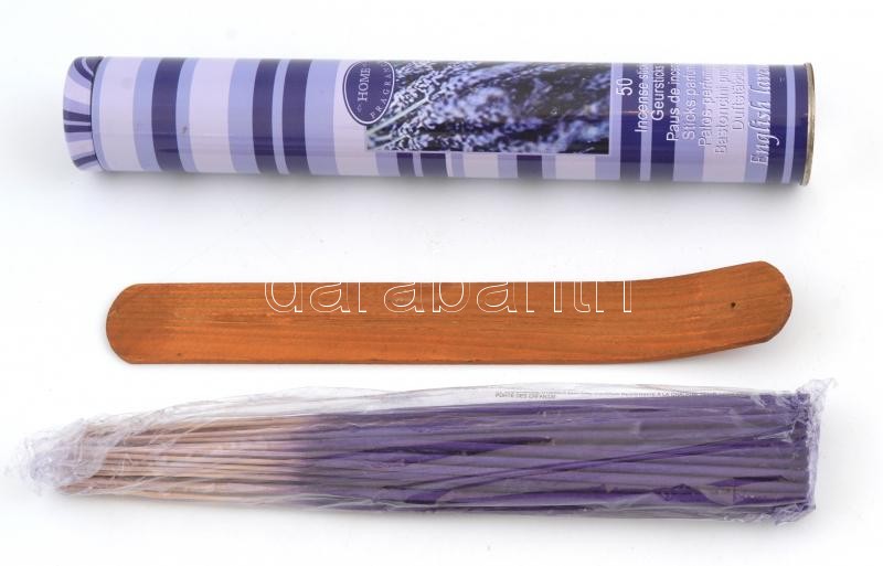 Levendulás füstölőkészlet, fém dobozban, h: 28 cm