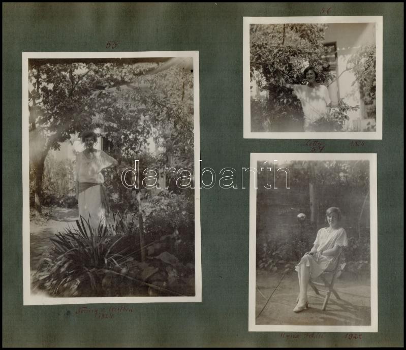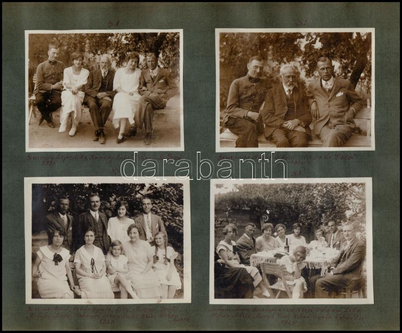 1925 Szurmay-család fotói, rajta Szurmay Dezsővel (1886-1945) első világháborús veterán katonatiszt és híres műkertész, és vitéz Szurmay Lajos (1888-1959) későbbi vezérőrnagy, valamint apjuk, Szurmay Antal (1853-1945), akinek testvére vitéz uzsoki báró Szurmay Sándor (1860-1945) tábornok, korábbi hadügyminiszter, 4 db fotó kartonon, feliratozva, a hátoldalán további 3 db fotóval, 11x9 cm és 12x9 cm közötti méretben/hátoldali fotók: 17x12 cm és 8x9 cm közötti méretben.