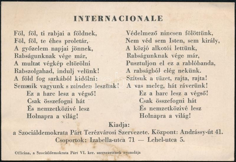 https://www.darabanth.com/en/359-Online-auction/359.0/Art-and-other-collectibles/Printed-Materials~500030/cca-1946-A-Szocialdemokrata-Part-Terezvarosi-Szervezetenek-kartyanaptara-az-Internecionale-sz~II2065041