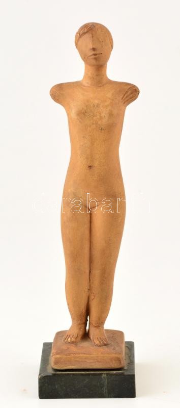 N. Bask jelzéssel: Nőalak. Kerámia, márvány talapzaton. 24 cm ragaszto...