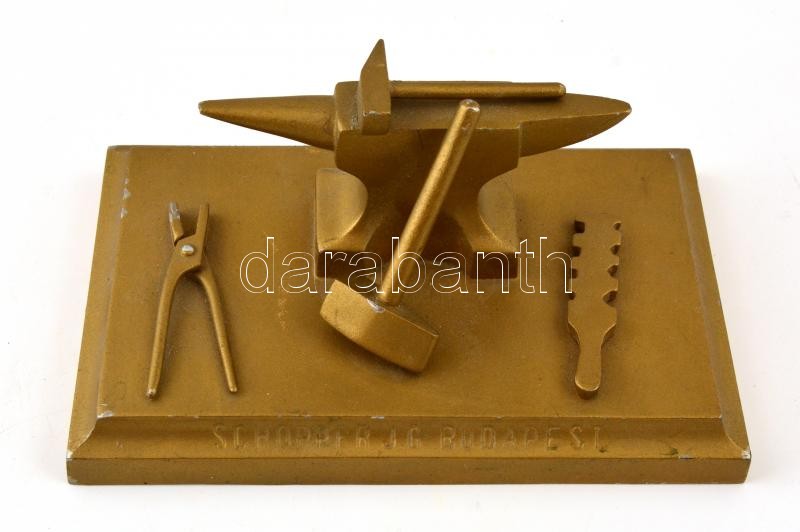 Vasöntő munkás szobra 28 cm Jelzés nélkül, Bronzírozott fém. réz üllő szobor Schopper J. G. Budapest. 2 db.