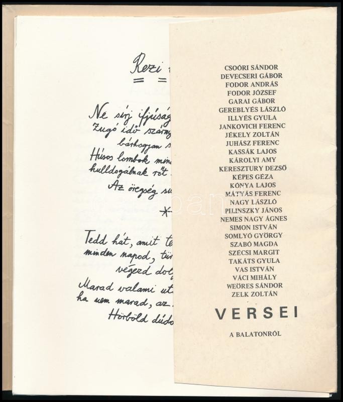 cca 1970 Balatoni almanach. Csoóri Sándor, Devecseri Gábor, és mások v... https://www.darabanth.com/en/359-Online-auction/359.0/Art-and-other-collectibles/Ships-Balaton~500027/cca-1970-Balatoni-almanach-Csoori-Sandor-Devecseri-Gabor-es-masok-versei-a-Balatonrol-Ves~II2065227