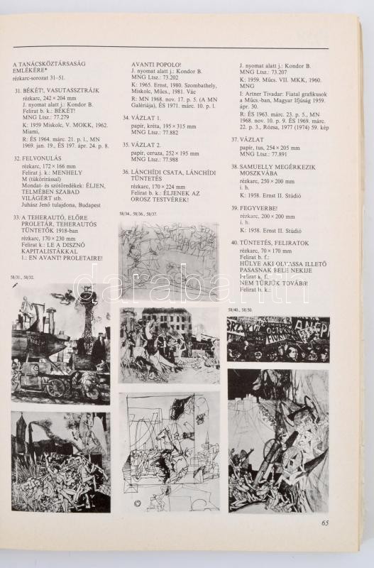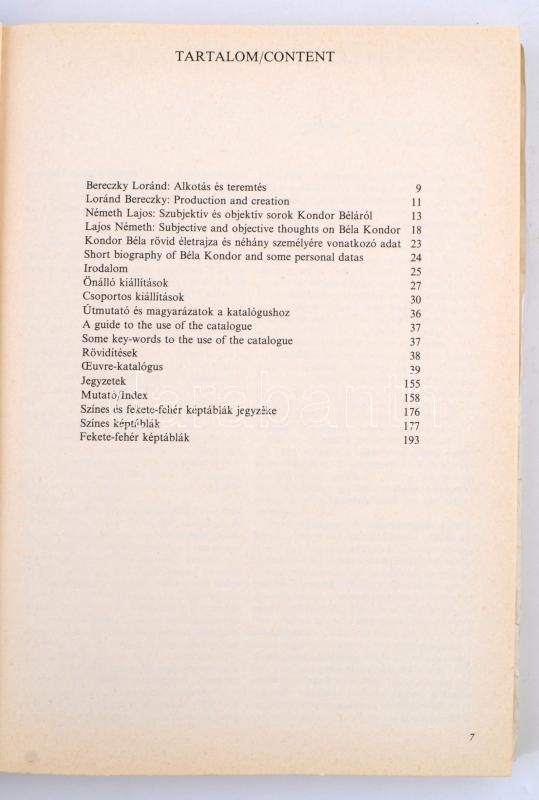 Kondor Béla (1931-1972) oeuvre-katalógus/oeuvre-catalogue. A katalógust összeállította, írta és a kiállítást rendete: Bolgár Kálmán, Nagy T. Katalin. Bp., 1984, Magyar Nemzeti Galéria, 224+4 p. Az életmű kiállítás jegyzékével. Kiadói papírborítékban, a kötése kissé laza, két lap kijár. / Oeuvre-catalogue of Béla Kondor. Edited by Kálmán Bolgár, Katalin Nagy T. Bp., 1984, Hungarian National Galery. Paperbinding, two pages are coming out, in Hungarian language.