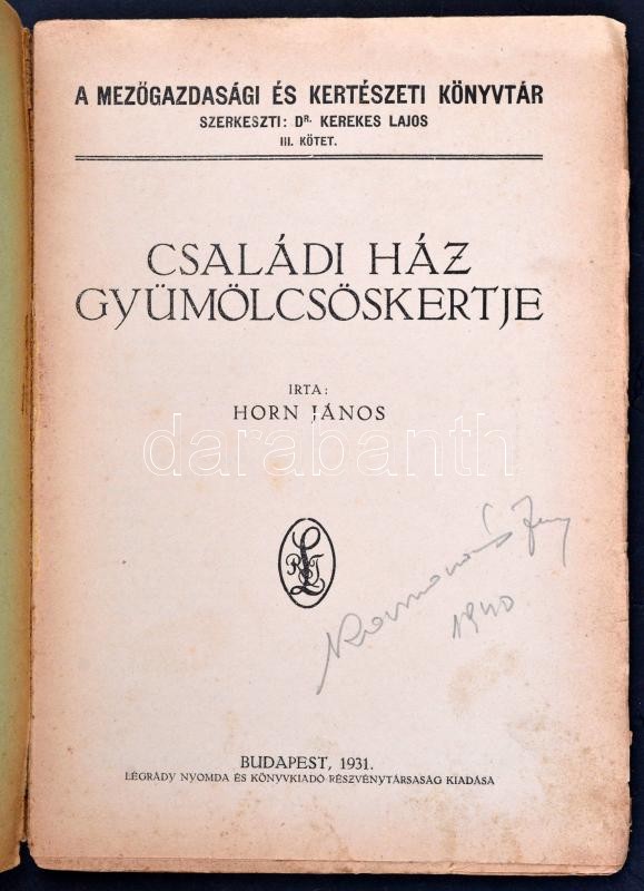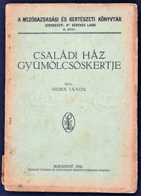 Horn János: Családi ház gyümölcsöskertje. Mezőgazdasági és Kertészeti Könyvtár. III. köt. Bp.,1931, Légrády, 76 p. Kiadói papírkötésben.