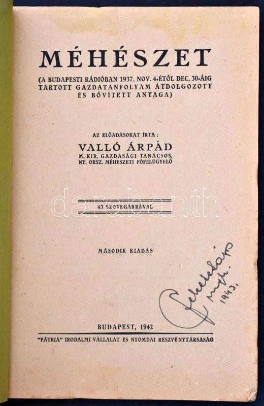 Valló Árpád: Méhészet. Bp.,1942, "Pátria", 80 p. Második kia...