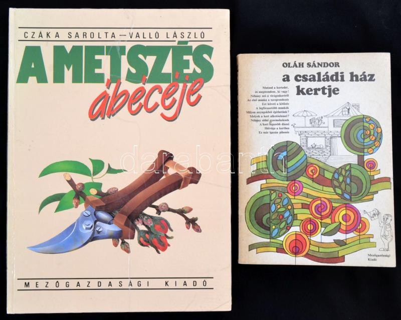 Vegyes könyvtétel, 5 db: Magyar fűvész könyv. (1988, Múzsák, reprint, kopott borítóval, javított gerinccel.), Oláh Sándor: A családi ház kertje (1974, Mezőgazdasági), Pirk Ambrus: Ötletek a kert berendezéséhez. (1977, Mezőgazdasági), Kedvenc növényeink. (1996, Aquila), Czáka Sarolta-Valló László: A metszés ábécéje. (1987, Mezőgazdasági.) Kiadói kartonált papírkötésben, és kiadói papírkötésben, változó állapotban.