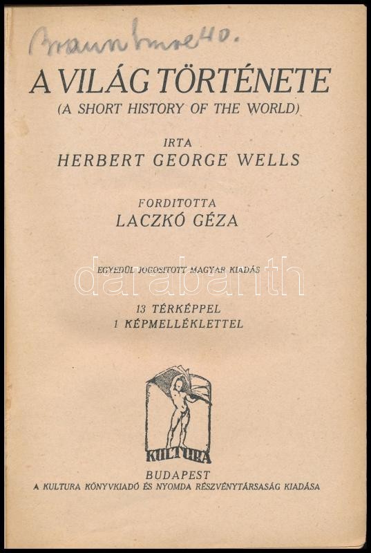 H. G. Wells: A világ története. (A short history of the world.) Fordít... https://www.darabanth.com/en/359-Online-auction/359.0/Books/Books-History~1500004/H-G-Wells-A-vilag-tortenete-A-short-history-of-the-world-Forditotta-Laczko-Geza-Bp-C3~II1882808