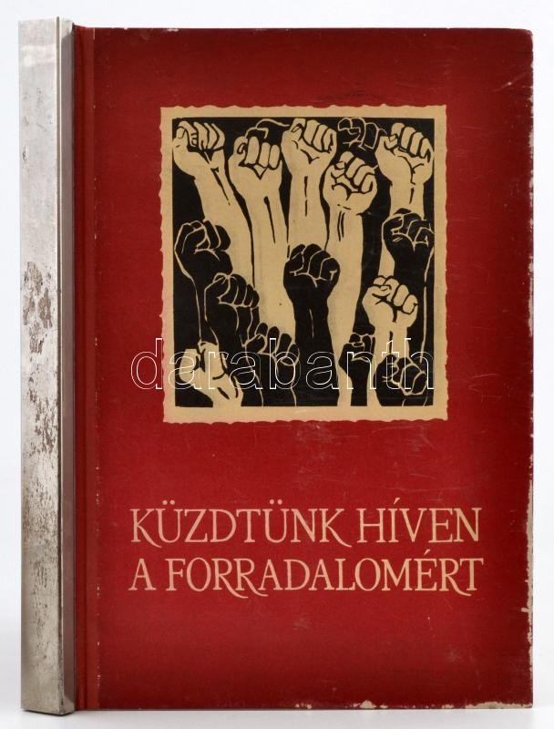Description: Küzdtünk híven a forradalomért. Képes röplapok az illegalitás idejéből. Az MSZMP Központi Bizottságának Párttörténeti Intézete. Bp.,1961, Kossuth, XXI+1 p.+100 t. Kiadói félvászon-kötésben, a gerincén fém sínnel, amit lehúzva a röplapok kiemelhetőek belőle, kissé kopott borítóval. Megjelent 4000 példányban.