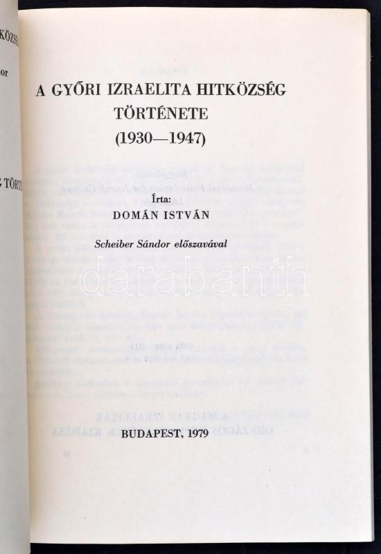 Domán István: A győri izraelita hitközség története. A Magyarországi Z... https://www.darabanth.com/en/359-Online-auction/359.0/Books/Books-Judaica~1500017/Doman-Istvan-A-gyori-izraelita-hitkozseg-tortenete-A-Magyarorszagi-Zsido-Hitkozsegek-Mo~II2067370