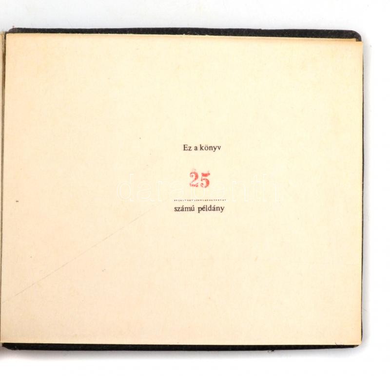 Dr. Andrássy Antal: Zsidó sors Somogyban. 1944. Kaposvár,é.n., Miniatűr KönyvgyűjtÅ‘k Klubja. Kiadói fekete egészbÅ‘r-kötésben, fém plakettel, a borÃtón kopásnyomokkal. Megjelent 200 példányban, ebbÅ‘l 100 darab valódi fekete bÅ‘rkötésben, plakettel, 1-100-ig számozva. Számozott (100/25.) példány.