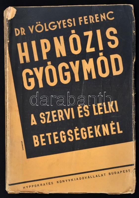 Dr. Völgyesi Ferenc: Hipnózis-gyógymód a szervi és lelki betegségeknél. Lélek és természettudomány. Bp., é.n., Hyppokrates. Kiadói papÃrkötés, a borÃtó szélein kis szakadásokkal, és a gerincen szakadással.