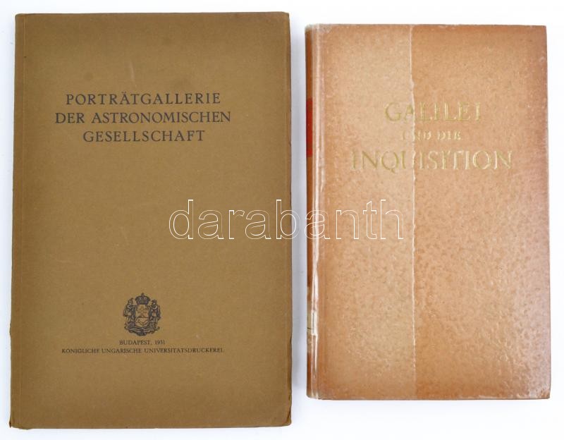 Galilei und die Inquistion. München,1938,Arbeitsgemeinshaft für Zeitgeschichte. Német nyelven. Kiadói kartonált papírkötés, javított gerinccel, védőfóliában.+Porträtgallerie der Atronomische Gesellschaft. Bp.,1931, Kir. M. Egyetemi Nyomda. Német nyelven. Kiadói papírkötés.