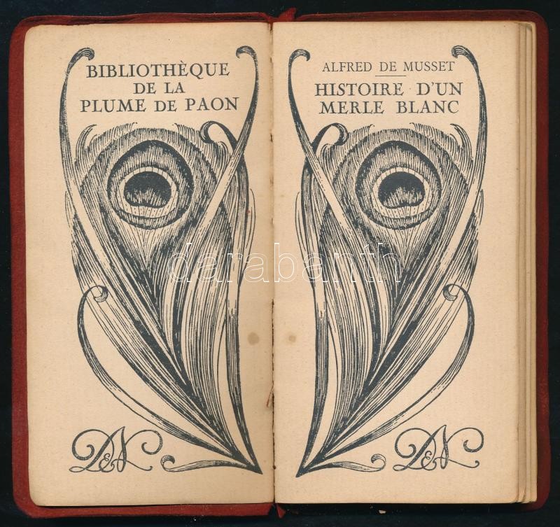 Description: Alfred de Musset: Histoire d'Un Merle Blanc. Bibliothéque de la Plume de Paon. Neuchatel&Paris,é.n.,Delachaux & Niestlé S. A. Francia nyelven. Korabeli aranyozott gerincű egészbőr-kötésben, kissé sérült gerinccel, kissé foltos borítóval.