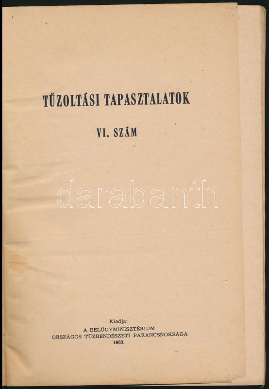 https://www.darabanth.com/en/359-Online-auction/359.0/Books/Books-Technics~1500015/Tuzoltasi-tapasztalatok-VI-szam-Bp-1963-Belugyminiszterium-Orszagos-Tuzrendeszeti-Paran~II2063674