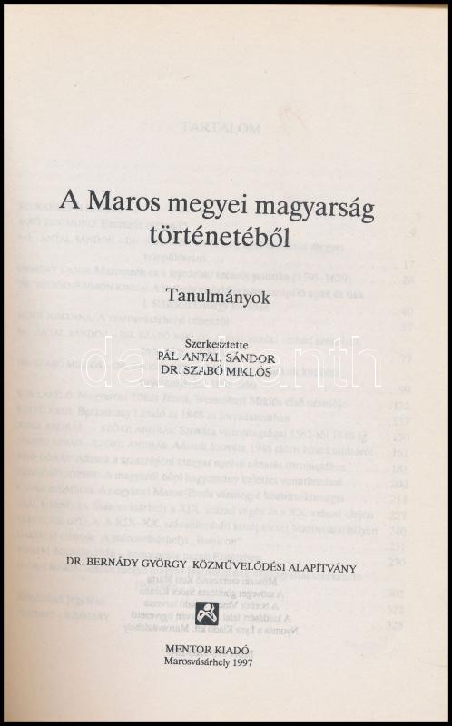 A Maros megyei magyarság történetéből. Tanulmányok. Szerk.: Pál-Antal Sándor, Dr. Szabó Miklós. Marosvásárhely, 2001, Mentor. Fekete-fehér fotókkal illusztrált. Kiadói papírkötés.