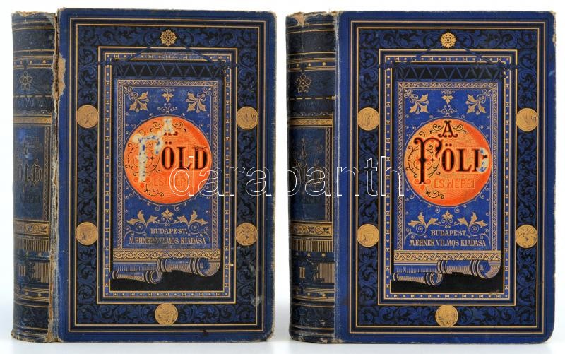 A föld és népei II.-III. Föld és Népismei Kézikönyv. Hellwald Frigyes és egyéb írók nyomán kidolgozta Dr. Toldy László. II. köt.: Afrika, Ázsia és Ausztrália földrajzi és népismei leírása. III. köt. Európa földrajzi és népismei leírása. Különös tekintettel Magyarországra a legujabb statisztikai adatok alapján dolgozta György Aladár. Bp.,-1880-1881, Méhner Vilmos, 672 p.; VIII +9-656 p. Térképmellékletekkel, gazdag szövegközti, és egészoldalas képanyaggal. Egységes, festett, dúsan aranyozott kiadói egészvászon kötés, kopott borítóval, a II. kötet gerince kissé sérült, kopott, a III. kötet gerince javított, kopott, a II. kötetből egy tábla kijár.