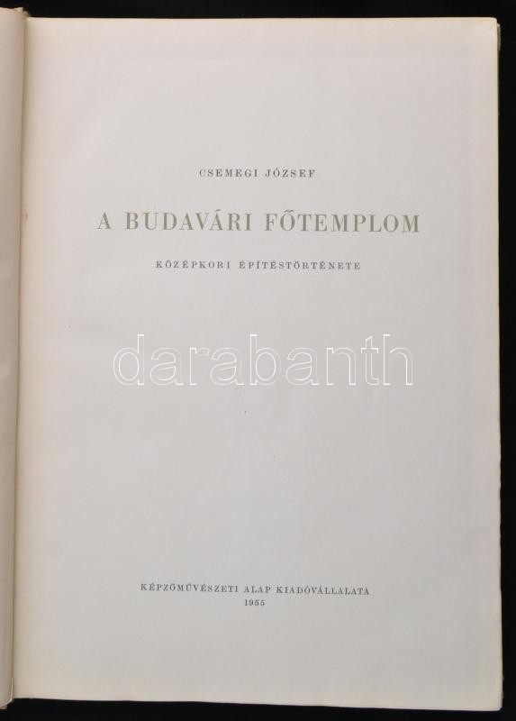 Csemegi József: A budavári főtemplom középkori építéstörténete. Magyar... https://www.darabanth.com/en/359-Online-auction/359.0/Books/Books-Travelling-Local-History~1500023/Csemegi-Jozsef-A-budavari-fotemplom-kozepkori-epitestortenete-Magyar-Muemlekek-Bp-1~II1960582