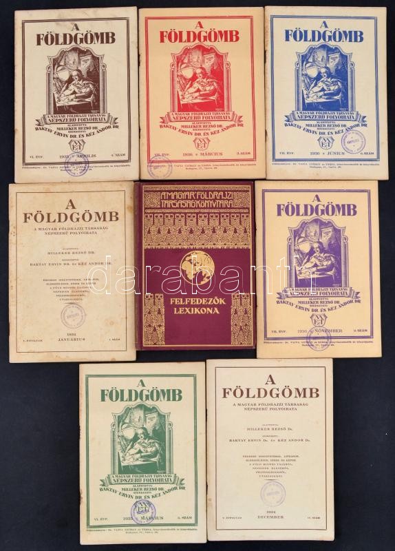 Felfedezők Lexikona. Szerk.: Dr. Kéz Andor. Magyar Földrajzi Társaság Könyvtára. Bp.,é.n., Franklin. Kiadói aranyozott egészvászon sorozatkötésben, kopott gerinccel, de egyébként jó állapotban. 1934-1936 A földgomb c. folyóirat 7 száma (V. évf. 1., 3., 10., VI. évf. 4., VII. évf. 3., 6.,9.) Szerk.: Dr. Baktay Ervin, és Dr. Kéz Andor. Kiadói papírkötésben.