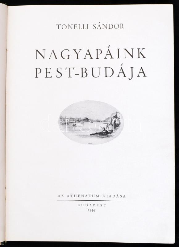 Tonelli Sándor: Nagyapáink Pest-Budája. Bp., 1944., Athenaeum, 218 p. Egészoldalas és szövegközti képekkel illusztrált. Kiadói félvászon kötésben.