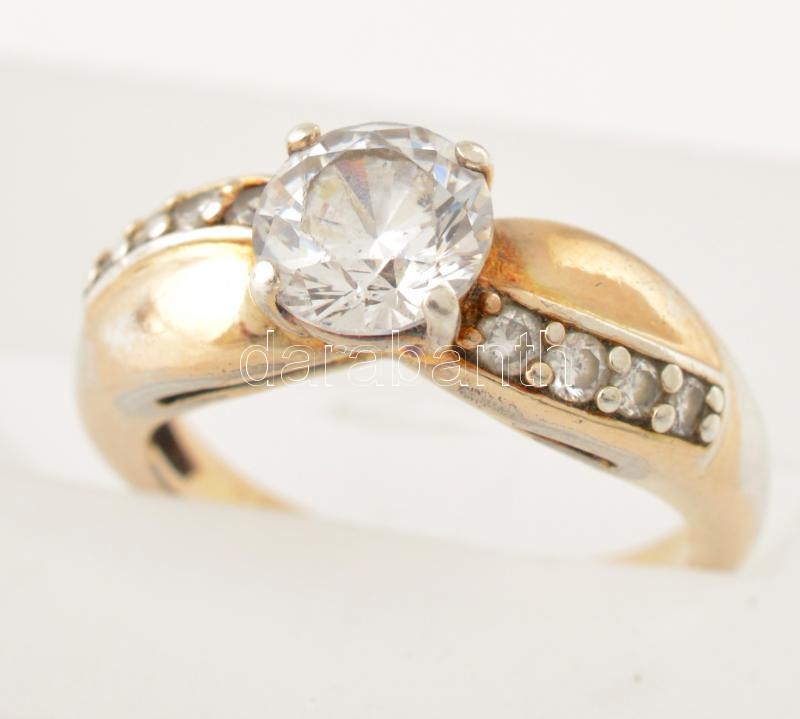 Aranyozott ezüst(Ag) gyűrű, kövekkel, jelzés nélkül, méret: 53, bruttó...