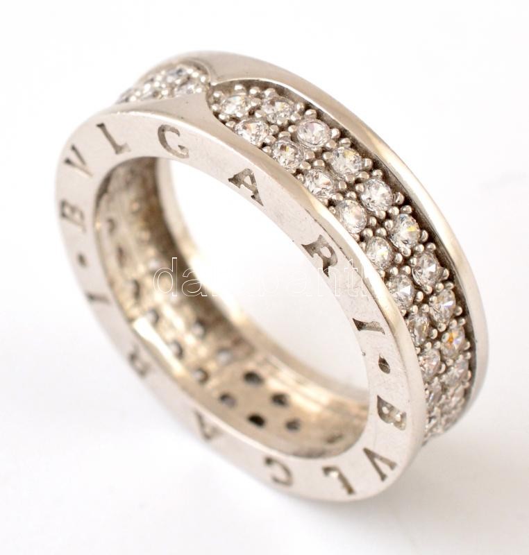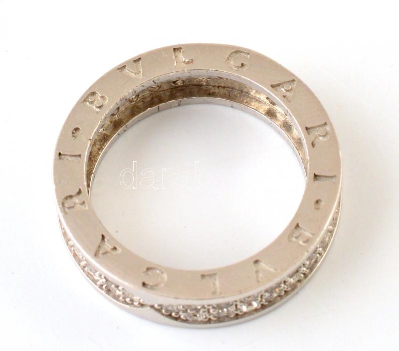 Ezüst(Ag) apró kövekkel kirakott gyűrű, Bulgari jelzéssel, méret: 58, ...